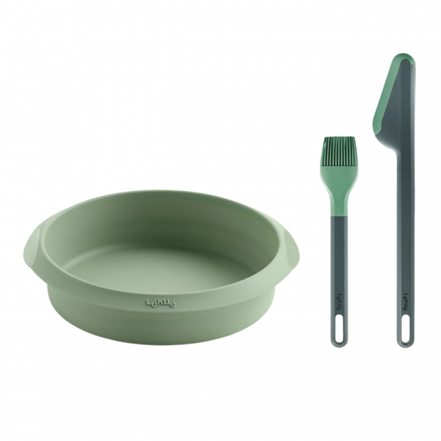 Kittet indeholder en silikoneform, en tang og en pensel. Formen i 100 procent silikone har non-stick overflade, som giver et jævnt resultat og nem rengøring. Den passer til 5 liters air fryers. Tangen har silikonebelagte spidser, der ikke ridser overfladen, og penslen gør det nemt at fordele olie eller sauce.
