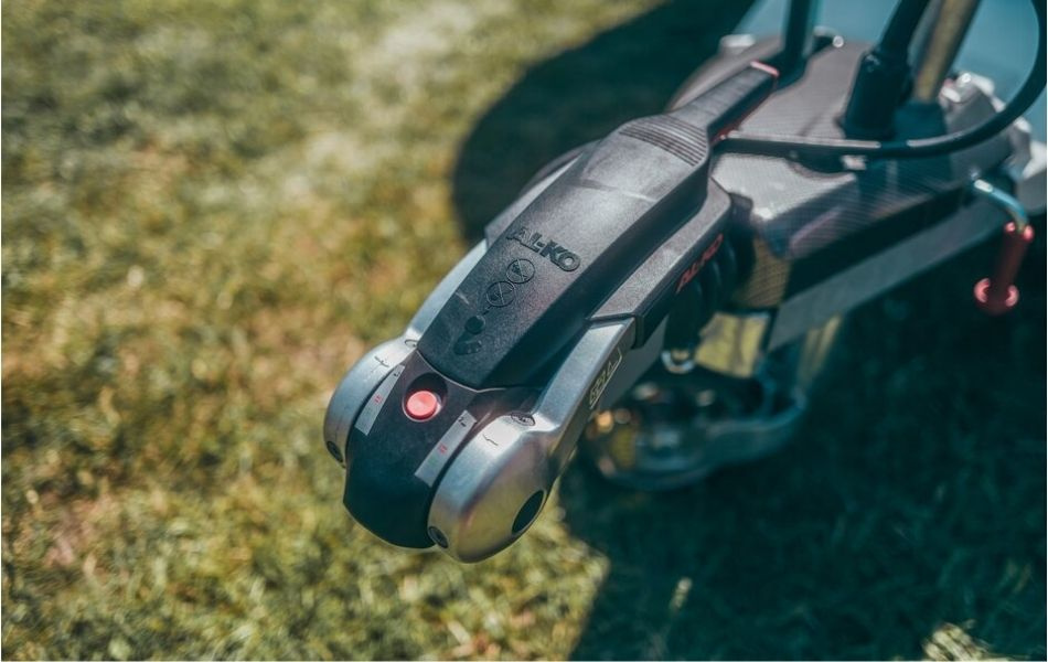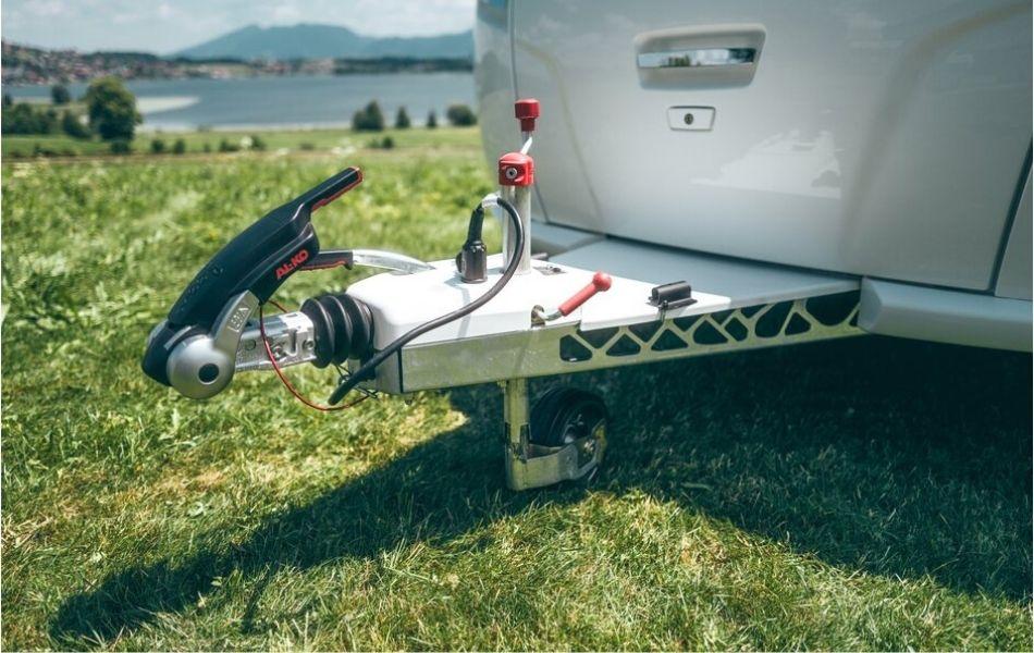 Koblingen erstatter standard kuglekoblingen på trækket og kan monteres uden avanceret værktøj. Stabiliseringshåndtaget presser friktionsbelægningerne mod trækkrogen og dæmper bevægelser effektivt. Separate håndtag gør betjeningen nem med én hånd. Integreret sikkerhedsindikator viser korrekt montering.