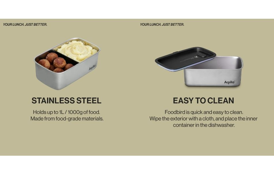 Foodbird BL5 gør det muligt at spise varm mad direkte fra madkassen hvor som helst.