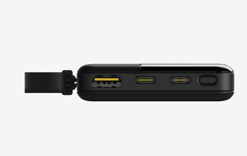 Pakken indeholder: Powerbank, manual, bærestrop, 30 cm USB-C til USB-C-kabel