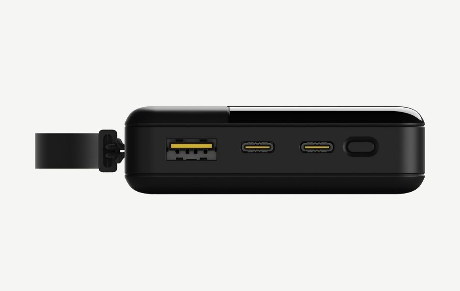 Powerbanken leveres komplet med bærestrop, 30 cm USB-C til USB-C-kabel og manual, så du har alt, hvad du skal bruge for at komme i gang med det samme.