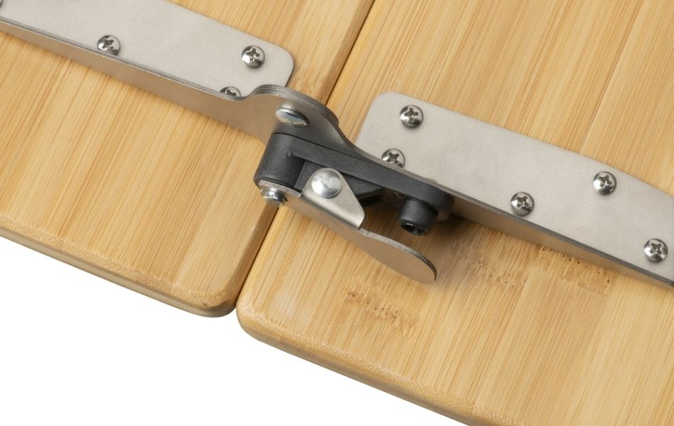Bordpladen i bambus er slidstærk og giver et naturligt udseende. Aluminiumsrammen sikrer stabilitet og lavere vægt.
