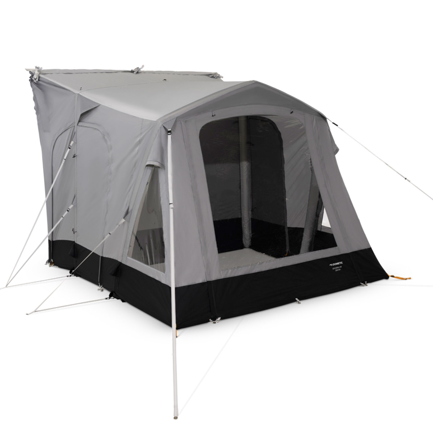 Leggera Air 260 DA består af to dele: en teltsektion og en tunnel. Tunnelen fungerer både som tilkobling til køretøjet og som praktisk opbevaringsplads, når du er på pladsen. Når du forlader teltet, kan siden mod køretøjet dækkes, hvilket omdanner forteltet til et fritstående, beskyttet rum, der modstår vejr og vind.