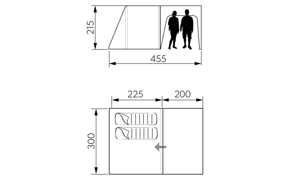 Øger boarealet i teltet og giver ekstra tagbeskyttelse.