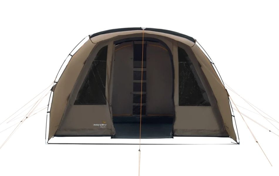 - Rummeligt familietunneltelt med stort opholdsrum og regnbeskyttet frontindgang