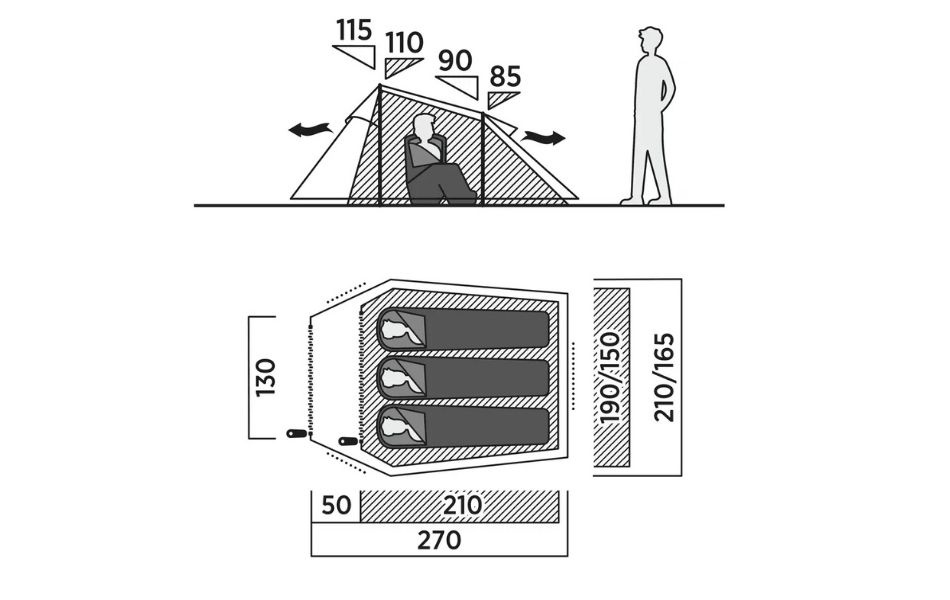 - Kompakt tunnel med fortelt til ekstra opbevaring