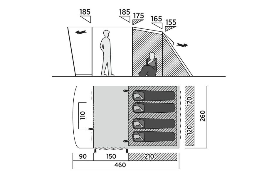 Tekstilsammensætning, Yderdæk 100% polyester, Indertelt 100% polyester, Mesh 100% polyester