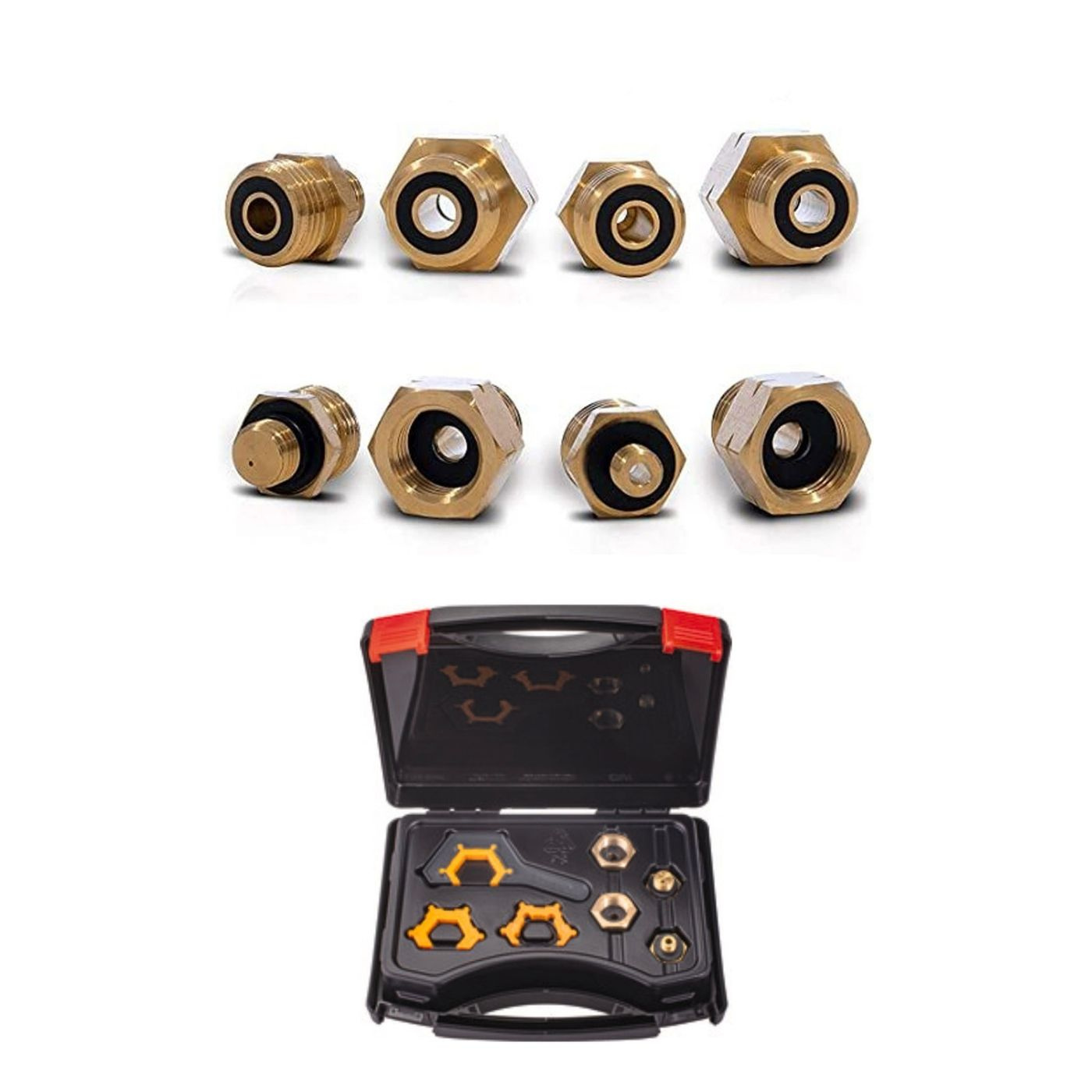 Europa gasadapter sæt er en praktisk løsning til dig, der rejser i Europa med autocamper, campingvogn eller båd. Med dette sæt kan du tilslutte gasflasker fra flere europæiske lande til en tysk regulator. Perfekt til campingferier og længere rejser.