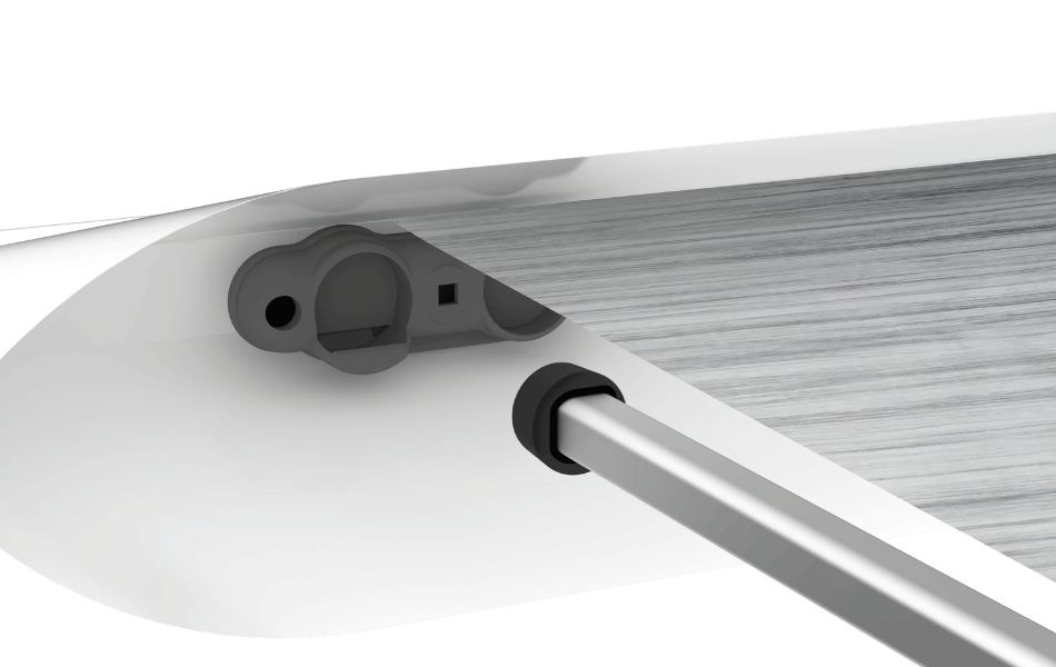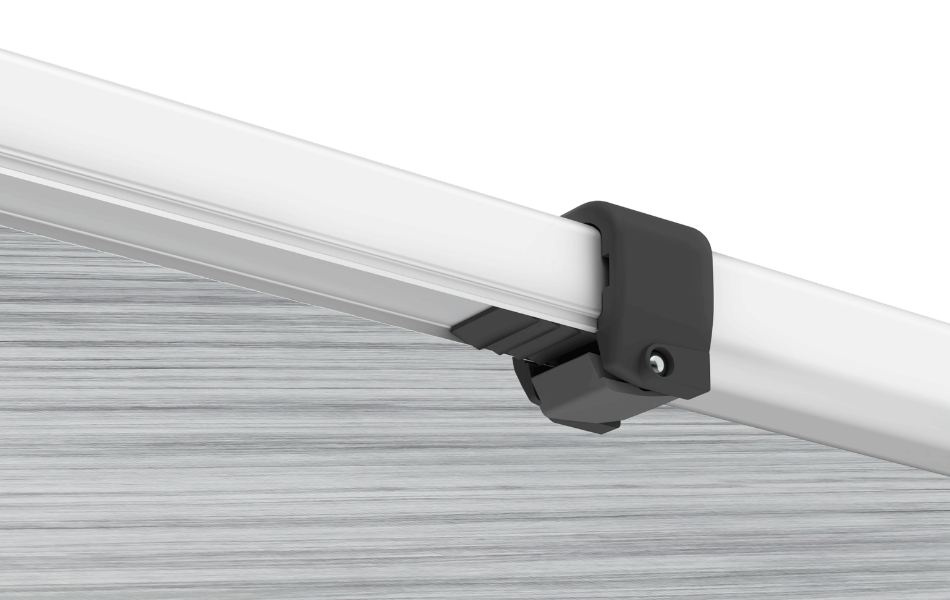 Caravanstore Evo er udstyret med dobbelte skinner til montering af frontpaneler og tilbehør, hvilket gør den fleksibel og tilpasningsbar efter dine behov. Alle dele som kommer i kontakt med køretøjet er beskyttet med gummidetaljer for at undgå slitage.