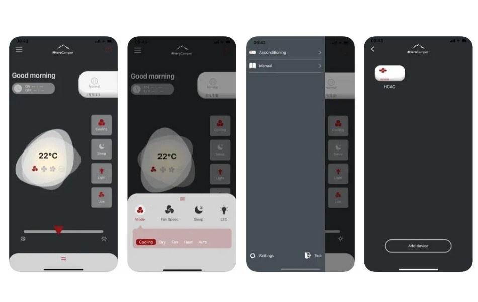 ISACOOL er nem at styre via den medfølgende fjernbetjening eller direkte i HeroCamper AC appen. Her kan du justere temperaturen, vælge driftstilstand og indstille timer for optimal komfort. Det aerodynamiske design sammen med en nem installation gør den til et oplagt valg til moderne fritidskøretøjer.