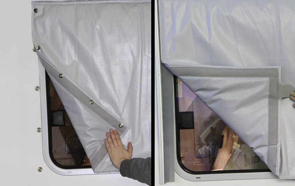 - Kederliste (medfølger ikke): Monter kederlisten på køretøjet (skrues eller limes fast). Brug derefter den medfølgende tekstilkeder med velcrobånd og tryk den mod isoleringsmåtten (som allerede har den modsatte velcrodel på plads). Fastgør derefter tekstilkederen, som er forbundet med isoleringsmåtten, i den monterede kederliste.
