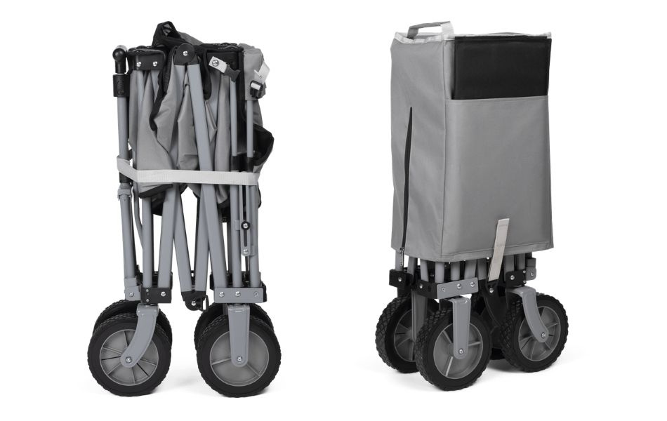 Når den ikke er i brug kan vognen nemt foldes sammen til et kompakt format og opbevares i den medfølgende taske. En praktisk løsning for dig som vil gøre transporten af udstyr lettere på dine eventyr.