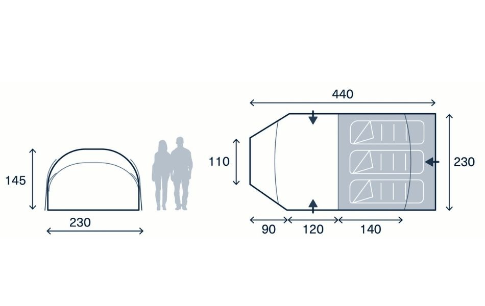 En beskyttet tunnelindgang giver ekstra plads til oppakning og madlavning samtidig med at den beskytter mod vind og regn. De dobbelte døre gør det nemt at komme ind og ud af teltet fra flere sider og giver bedre ventilation. Indvendige organiseringslommer og et praktisk gear loft gør det nemt at holde styr på udstyret.