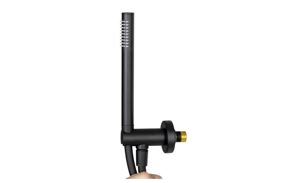 Elegant og komplet bruseudstyr fra serien Black is Beautiful, ideel til autocamper, campingvogn og båd med 12V-system. Sættet inkluderer et brusehoved med 30 mm diameter og 220 mm længde, en 150 cm lang slange og et vægbeslag. Designet er moderne og stilrent, og materialerne er af høj kvalitet i messing for langvarig brug. Mikrobryder er ikke inkluderet, hvilket sikrer enkel og pålidelig installation.
