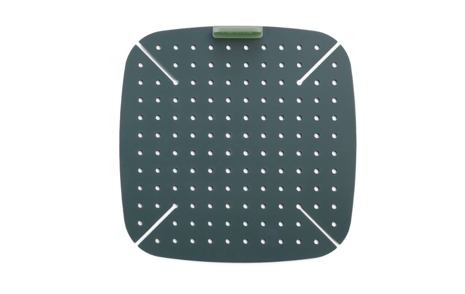 Giv maden en sprødere overflade samtidig med, at du holder din air fryer renere. Silikonemåtten forbedrer luftcirkulationen og giver jævn tilberedning, også på undersiden takket være hullerne og den hævede bund.