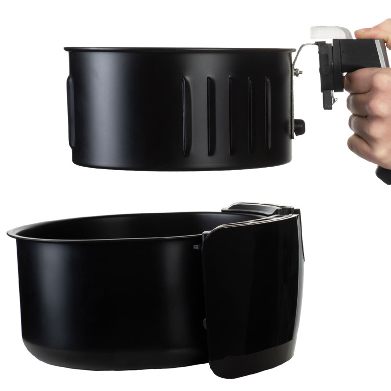 Designet er kompakt, og luftfritøren har en justerbar temperaturmåler, analog kontrolpanel, overophedningsbeskyttelse og indikatorlampe. Den har lavt strømforbrug for at klare campingpladsens strømkrav.
