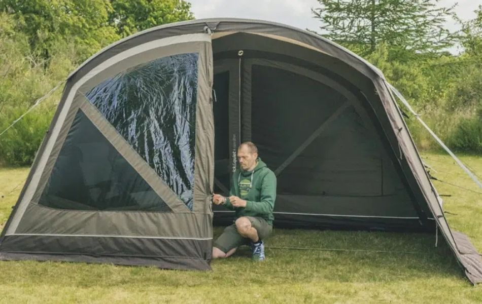 Dual Front Option gør det muligt at bruge teltet som tredelt løsning eller med åben frontmarkise. Den åndbare Outtex Airtech polycotton-dug sikrer et behageligt indeklima, mens mørke 230 cm Ambassador Master Bedrooms med meshventilation giver optimal sovekomfort.