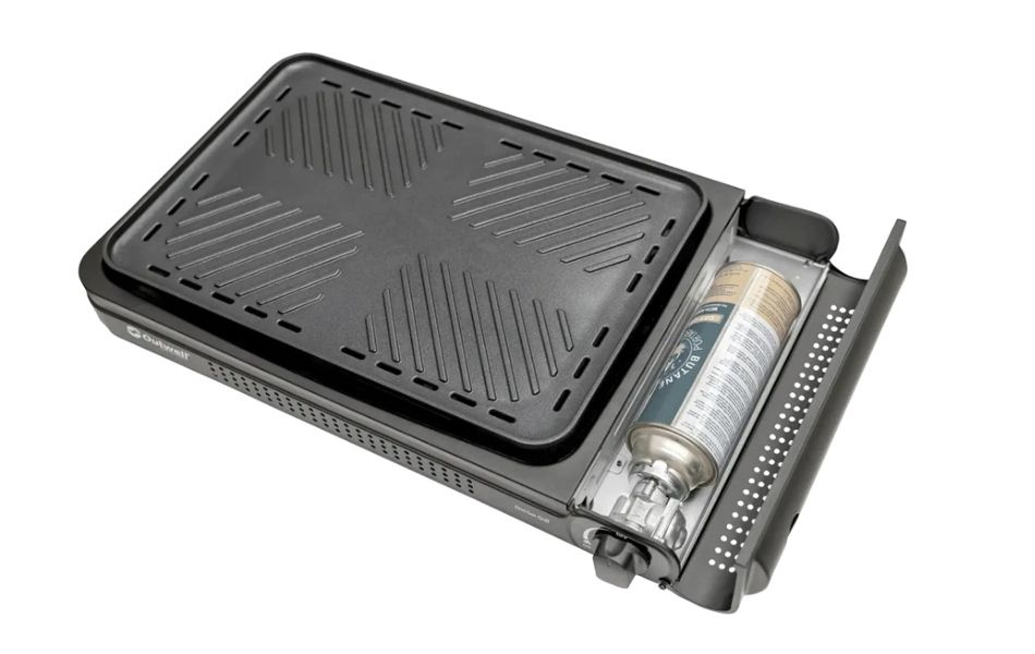 Den aftagelige non-stick-grill med keramisk belægning gør rengøring nem. Grillen har automatisk piezo-tænding, indbygget overophedningsbeskyttelse og magnetventil af høj kvalitet. Den bruger en MSF-1A butanpatron integreret i designet, så ekstra udstyr er unødvendigt.