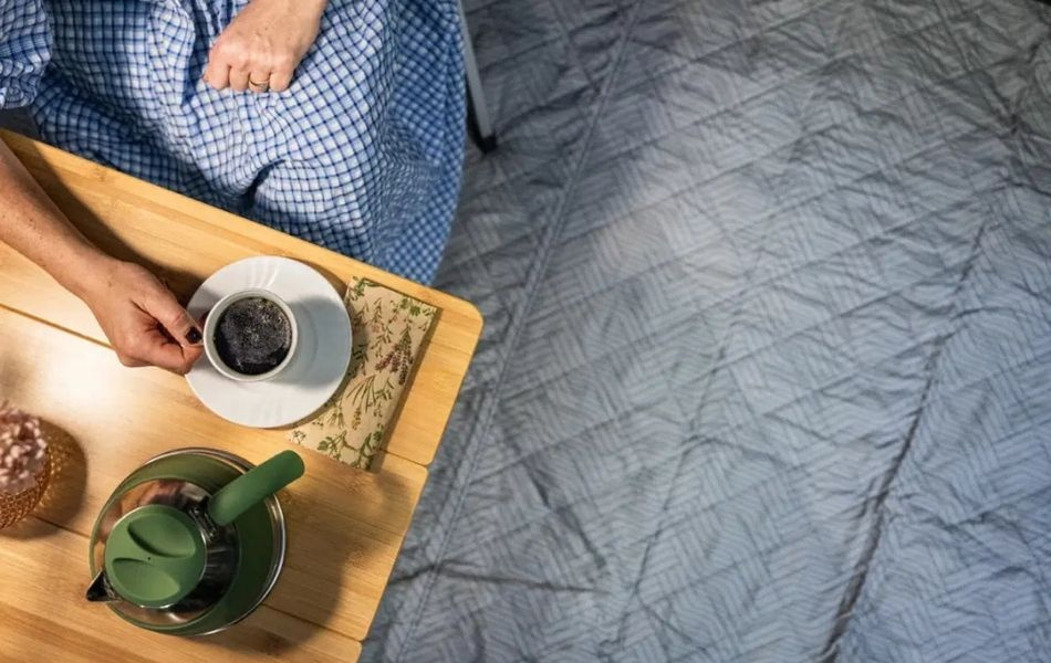 Outwell Matta Cozy Colorado 5 Air giver maksimal komfort med en blød overflade, der føles behagelig under fødderne. Den isolerende fyld holder kulden væk på kolde morgener og gør gulvet behageligt at gå på.