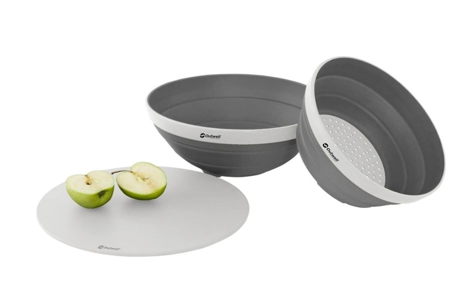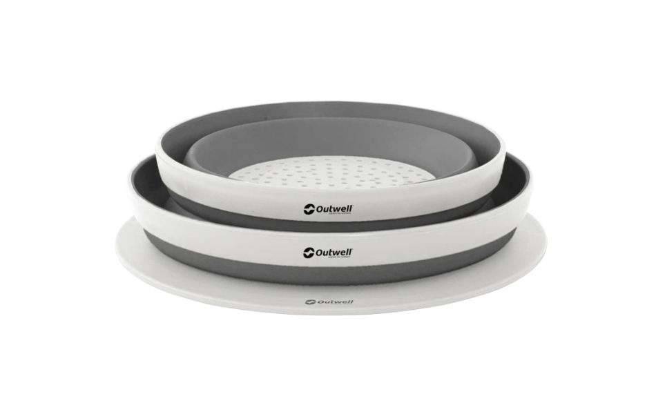 - Sammenklappelig skål, si og låg der kan pakkes sammen