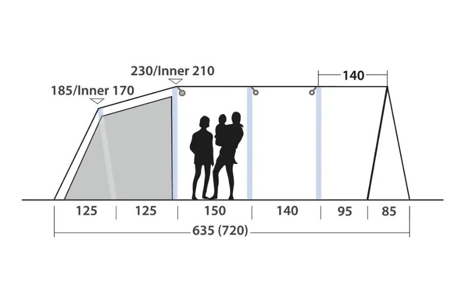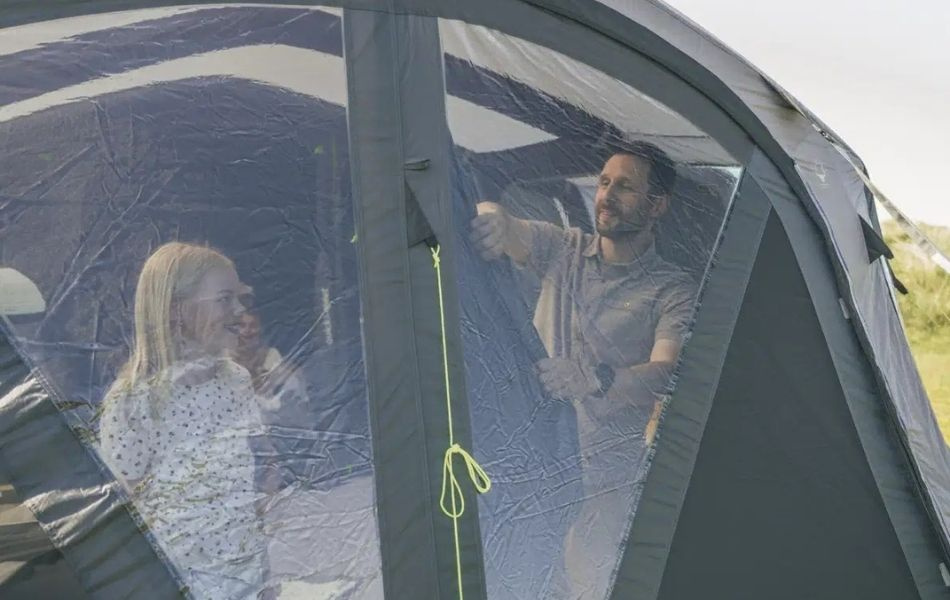 Det patenterede Outwell Light System giver behagelig og effektiv belysning i stuen via valgfri USB-C strømkilde - strømkilde medfølger ikke. De forformede luftkanaler giver god loftshøjde og stabil konstruktion, og DuraAir lufttuber er PVC-frie.