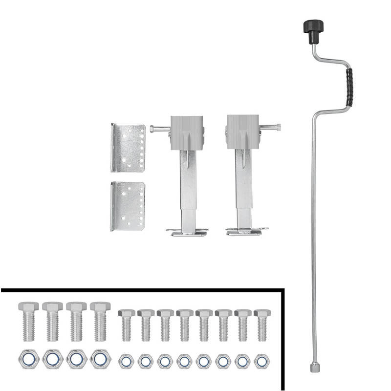 Sættet indeholder: 2 støtteben, 85 cm håndsving, monteringsmateriale. - Egenskaber
