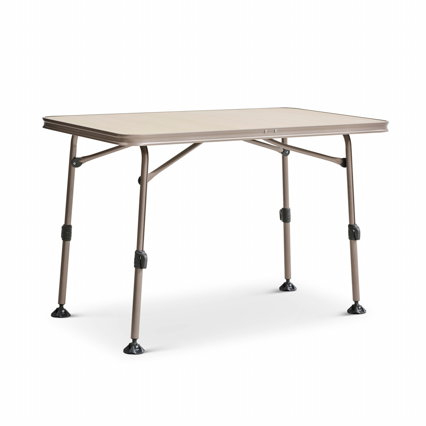 De fire pulverlakerede ben er højdejusterbare, hvilket gør det nemt at tilpasse bordet til underlaget og sikre god stabilitet, selv på ujævnt terræn. Når bordet skal pakkes sammen, foldes det hurtigt og nemt og opbevares i den medfølgende bæretaske. Et praktisk, stabilt og brugervenligt campingbord, der gør campinglivet både mere komfortabelt og fleksibelt.
