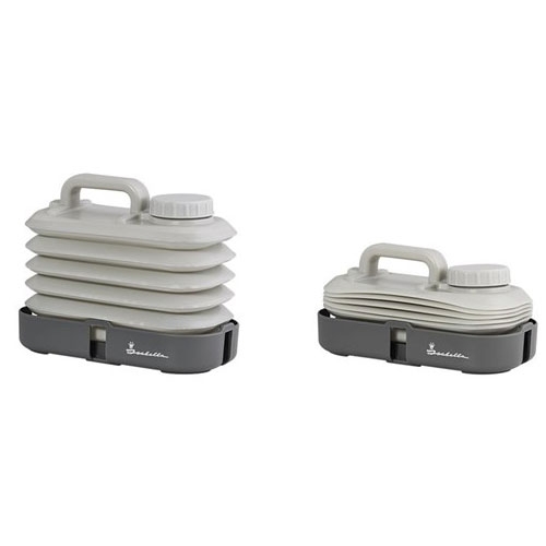 • Sammenfoldelig vandpose med håndtag og vandhane i plast.