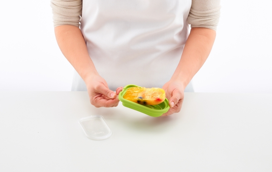 Formene fyldes liggende, hvilket gør dem stabile og nemme at bruge. Selv børn kan hjælpe med at lave deres egen is. Låget beskytter indholdet mod lugt og smag i fryseren.