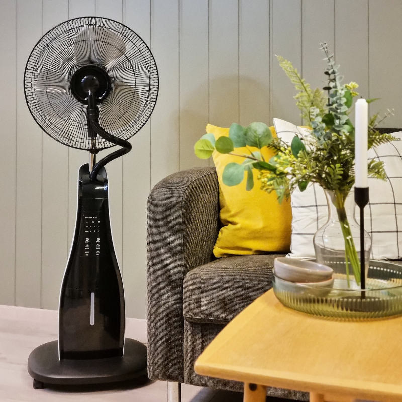 En smart 2-i-1 løsning, der køler endnu mere komfortabelt end en almindelig blæser. Udover blæserfunktionen vil blæseren blæse vanddamp ud, der gør oplevelsen optimal. Vandbeholderen rummer 3,4 liter. Reguleres med touchpanel, har også 7,5 timers timer.