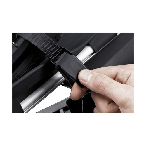 - Fælgeholderremmene med låsefunktion gør fastgørelsen af cyklen hurtig og nem.