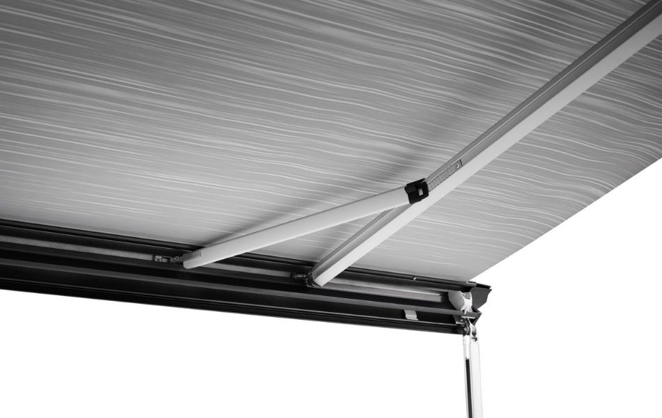 Tagmonteret kassette markise til autocamper, campervan og campingvogn med stabil konstruktion og optimal dugspænding. Giver generøs skygge og høj komfort.