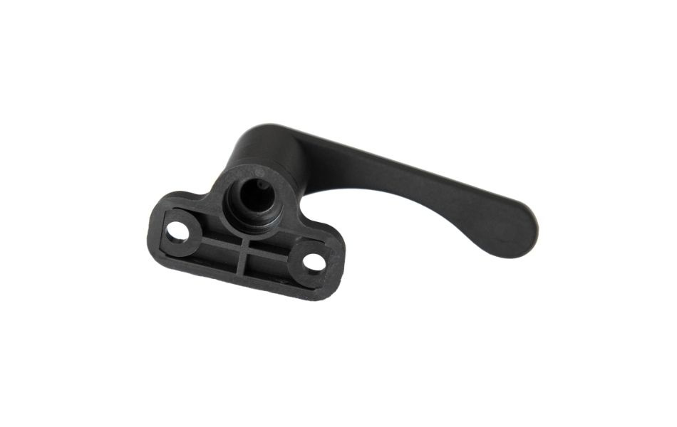Dette sorte vindueshåndtag er lavet af slidstærk plast og passer til campingvogn- og autocampervinduer. Håndtaget har ergonomisk design, der gør det let at åbne og lukke. CC-afstanden mellem skruehuller er 32 mm, hvilket gør monteringen hurtig og enkel. Håndtaget er 75 mm langt, 33 mm dybt med en bundplade på 45x30 mm for stabil montering og lang levetid.
