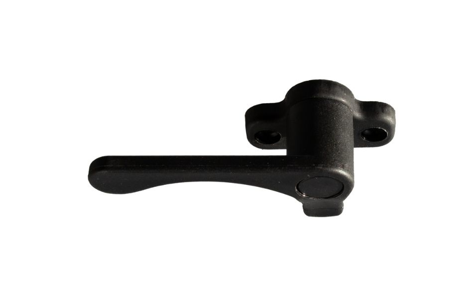 Dette sorte vindueshåndtag er lavet af slidstærk plast og passer til campingvogn- og autocampervinduer. Håndtaget har ergonomisk design, der gør det let at åbne og lukke. CC-afstanden mellem skruehuller er 32 mm, hvilket gør monteringen hurtig og enkel. Håndtaget er 75 mm langt, 33 mm dybt med en bundplade på 45x30 mm for stabil montering og lang levetid.