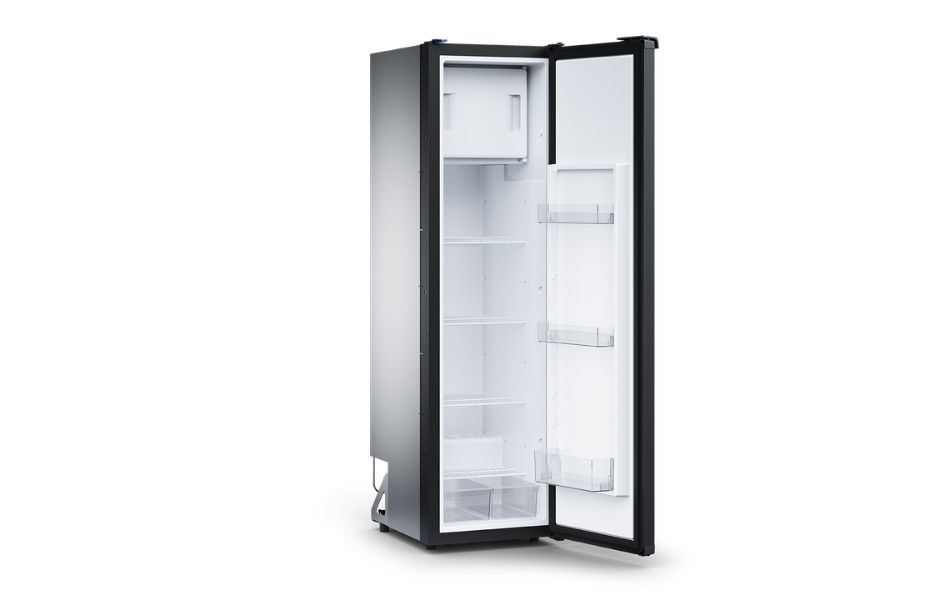 Den kraftfulde og energieffektive kompressor har to driftsformer, der giver pålidelig køling om dagen og stille drift om natten. Dørpanelet i mat sort kan udskiftes og tilpasses køretøjets interiør. Temperaturen indstilles nemt via kontrolpanelet inde i køleskabet, og dørlåsen fungerer også som ventilation uden for sæsonen.