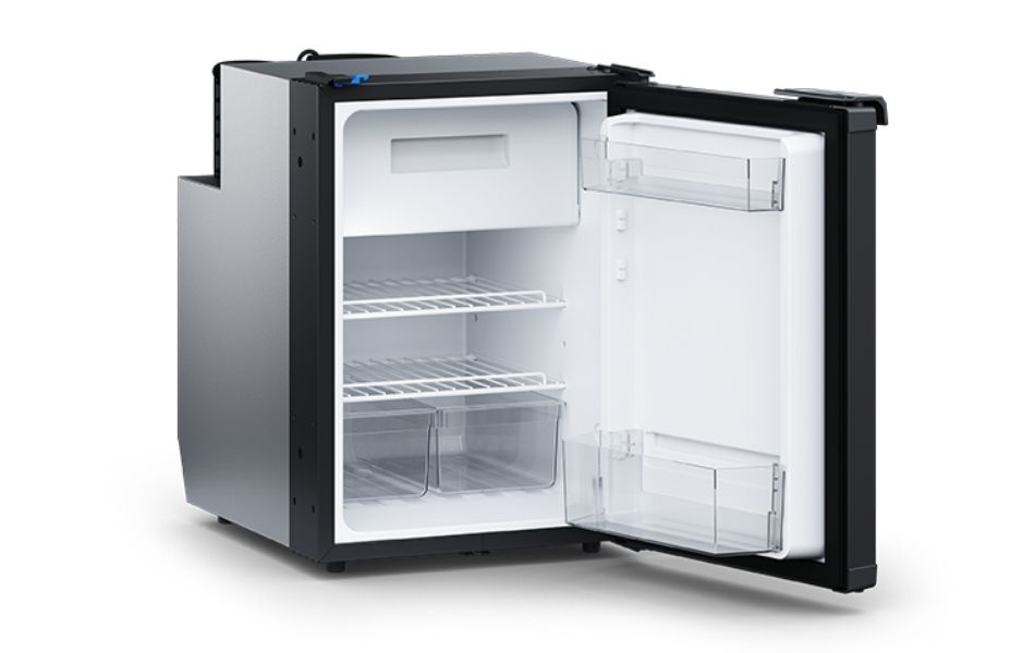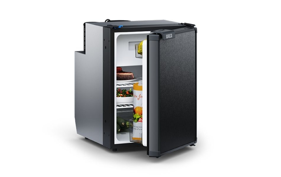 Den energieffektive kompressor tilbyder to driftsformer, hvilket giver kraftfuld køling om dagen og stille drift om natten. Dørpanelet i mat sort kan udskiftes og tilpasses køretøjets interiør. Temperaturen justeres nemt via kontrolpanelet inde i køleskabet, og dørlåsen fungerer også som ventilation udenfor sæsonen.